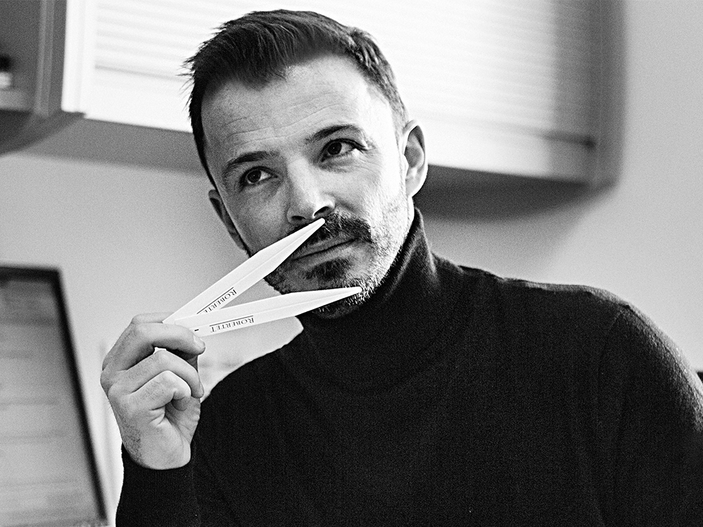 "The original Book was inspired by turning the pages and breathing in the smell of dry paper mingling in with the open fresh air. In Book+ Bold, I also used this as inspiration, but wanted to create a more expressive experience. I amplified the Eucalyptus and Cedar notes of Book by layering in Violet and earthy, deep Vetiver Root, creating a more intense version for the wearer."—Jerome Epinette