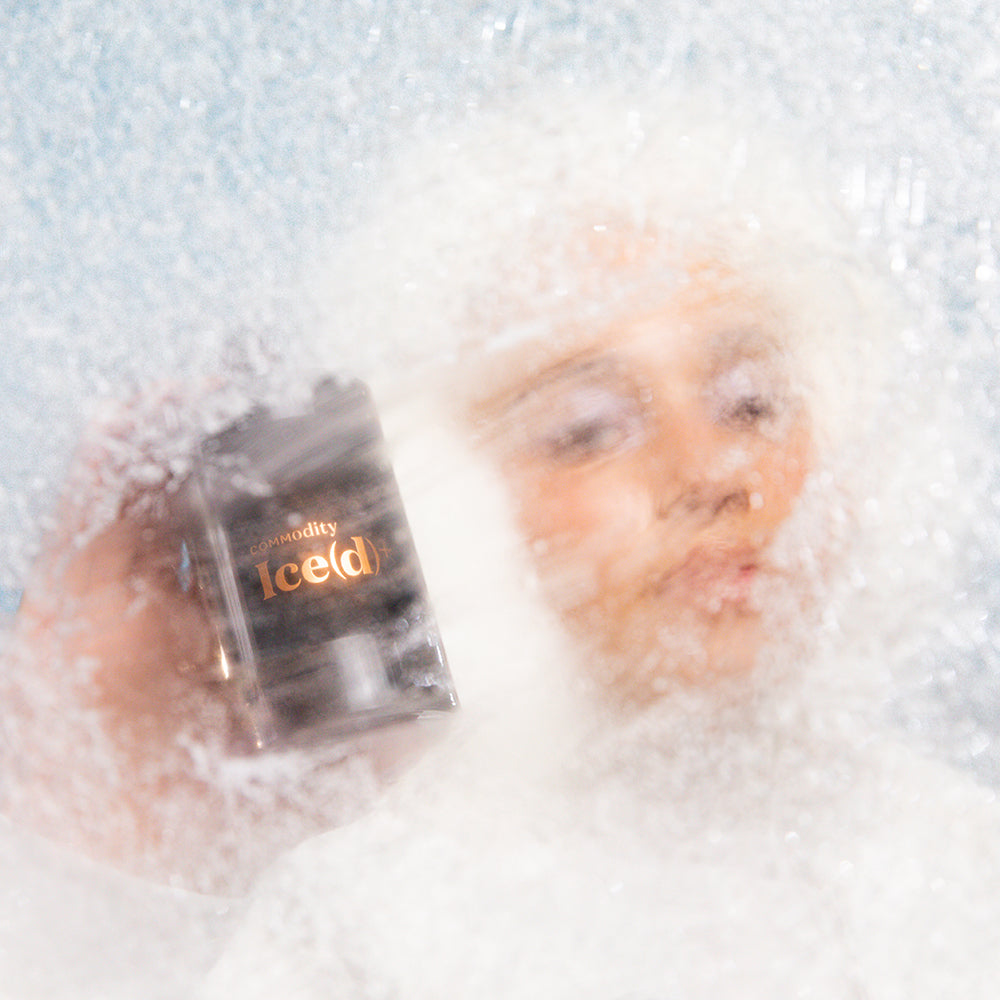 "Ice(d)+ Bold takes the concept of contrast to new heights. With a striking opening, it commands attention from the first spritz. The heart reveals a daring blend of Cardamom and Rose, creating a rich tapestry of spice and floral elegance. The sweet finish of Tonka Bean and Amber amplifies its presence, making Bold an unforgettable statement. If Expressive is the dynamic pioneer, Bold is the striking presence that echoes with self-assurance." —Caroline Sabas