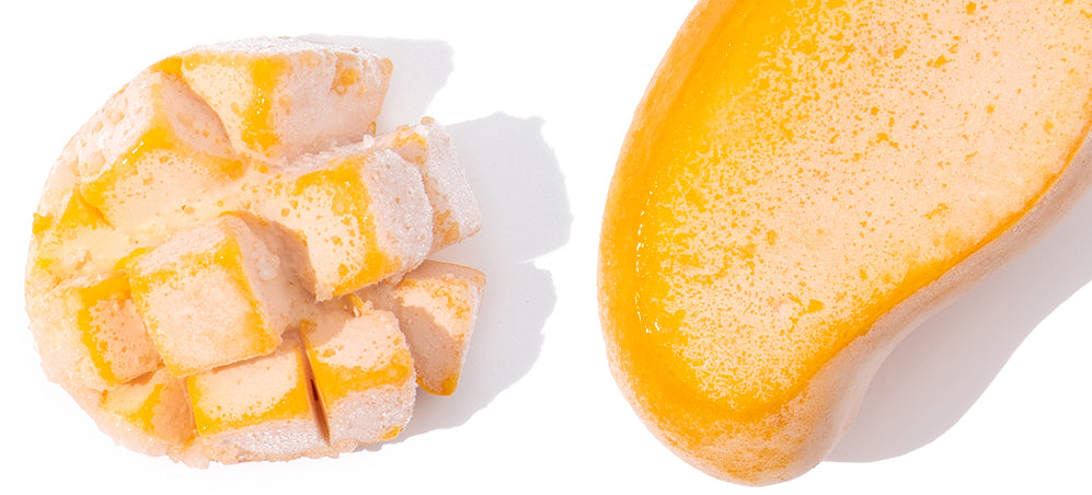 Melted ice: The crisp edges of Frozen Mango, Spearmint, and Eucalyptus soften with Seaweed and enveloping Skin Musk. A sheer, more aquatic blend that melts on contact.